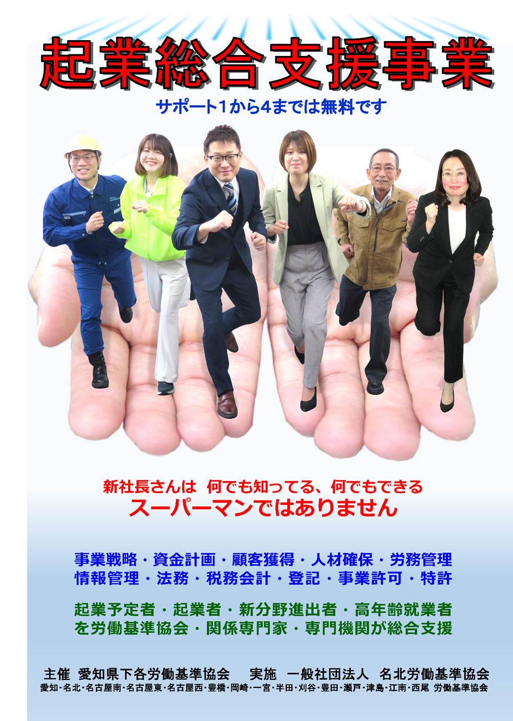 そこで、令和3年度新たに設立した、愛知県下各労働基準協会 起業総合支援センターでは、起業に必要な準備の全体像を掴むための「起業準備総合セミナー」を開催します。