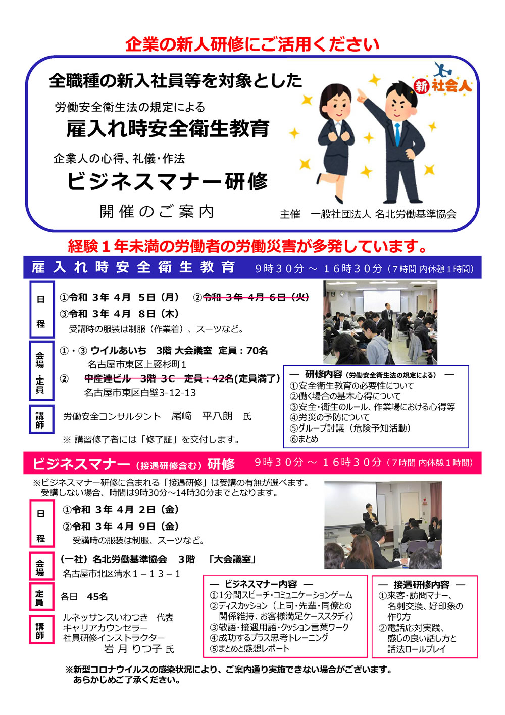 各教育・研修につきましてぜひ、新入社員の皆様にご受講頂きますようご案内いたします。